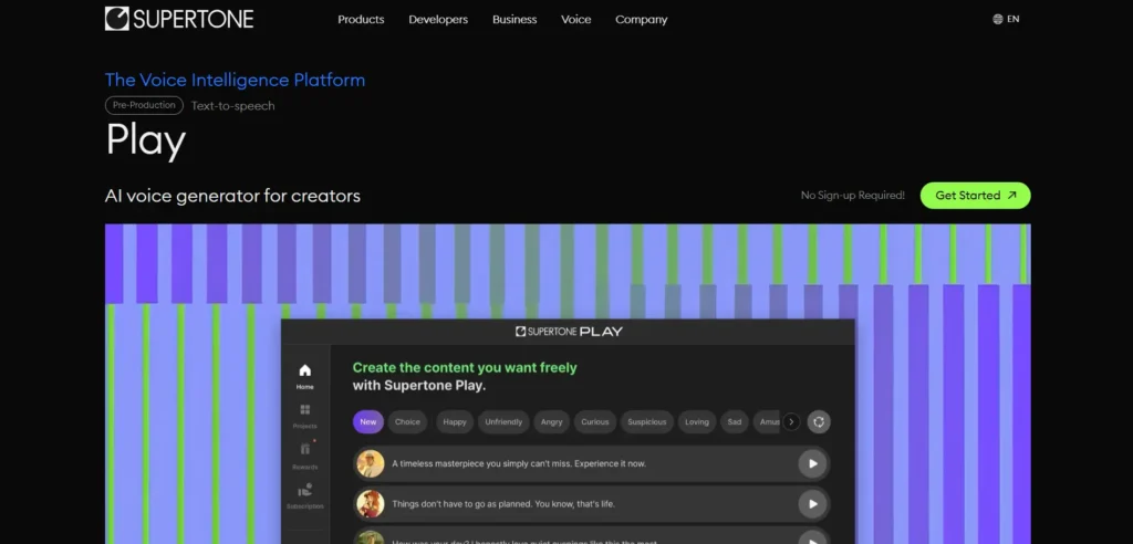 Supertone is an AI-powered platform that combines text-to-speech (TTS), real-time voice changing, voice cloning, audio enhancement, and developer APIs. The tool is designed for creators, businesses, and developers generate natural-sounding speech from text.
