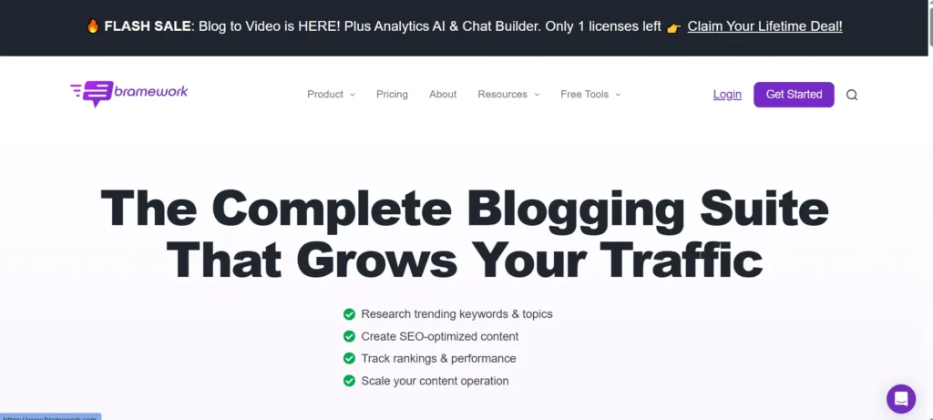 Bramework is an AI blogging and SEO platform that helps content creators research topics, create structured content, optimize for search intent, and publish high-quality blog posts. It does more than just generate text. It also includes keyword analysis, competitive research, and automated SEO recommendations so articles are ready for search before publishing.